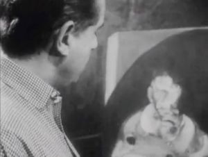 Francis Bacon dans son atelier, 1964, dans “Continent sans Visa” / Capture vidéo © Pierre Koralnik