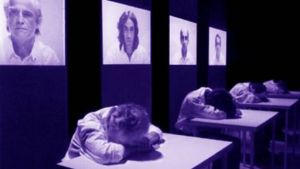 Réinvention de « Nacht und Träume », un scénario de Samuel Beckett, écrit pour la télévision. Un lied de Franz Schubert. Pour quatre hommes. « […] Assis, tête vide. C’est la nuit et ils vont rêver. Faut-il croire qu’ils s’endorment ? Ils rêvent mais ils font le rêve de l’insomniaque […] qui se fait tout seul dans la profondeur du corps et du désir. Ils se préparent à ce qu’ils ont à faire. Ils font le rêve de l’esprit qui doit être fait, fabriqué. Et ils vont recommencer, s’engager à performer la répétition jusqu’à l’épuisement. »